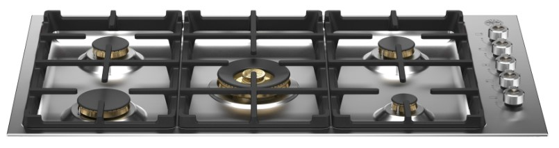 The combination of 5 brass burners and cast iron contour grates let you cook like a professional. The grates are designed for maximum space to fit pots and pans of different sizes with ease. Boil pasta, sear meat or stir fry with a wok on the power burner with dual ring flame; or delicately melt chocolate or warm cream on the simmer burner.