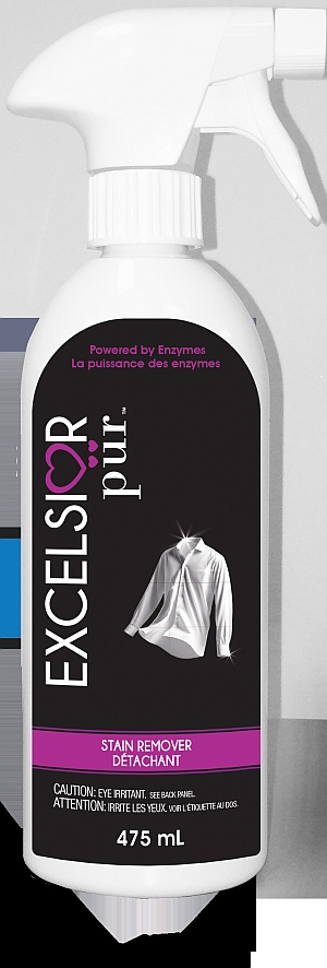 Excelsior Pür Stain Remover uses fast-acting enzymes to dissolve and lift even the toughest stains—from food and grease to grass and wine. Simply spray, wait, and wash. The formula continues working in the wash to ensure stains disappear without scrubbing. Available in a 475 ml spray bottle and 1 L refill.Read More