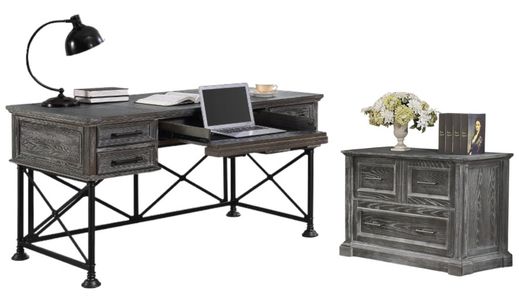 Elevate your home office with the Gramercy Park vintage burnished smoke home office set, a stylish and functional pairing designed for both productivity and timeless appeal. This set features a spacious writing desk and a matching file cabinet, each crafted from high-quality poplar solids and kulin veneers with a hand-applied.Read More
